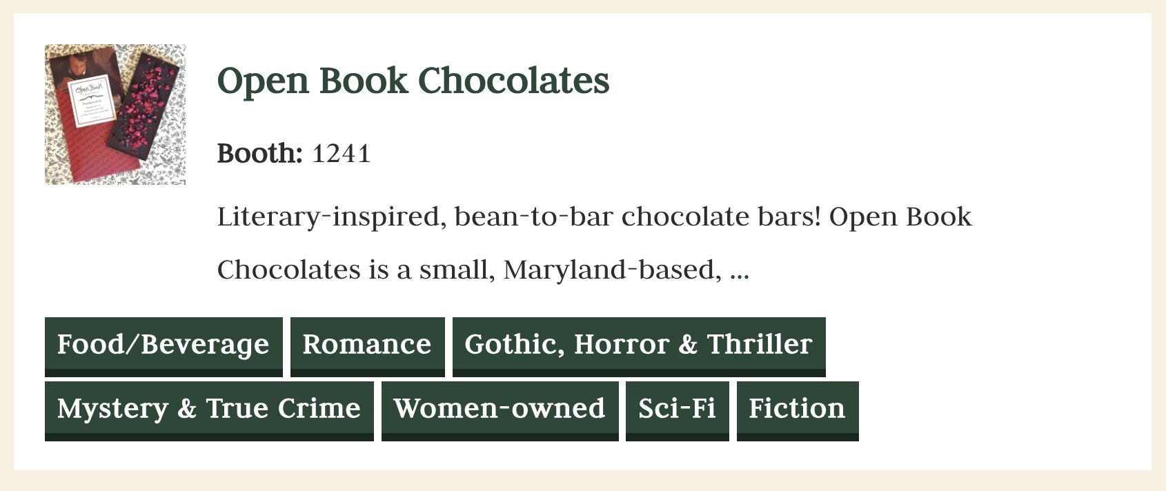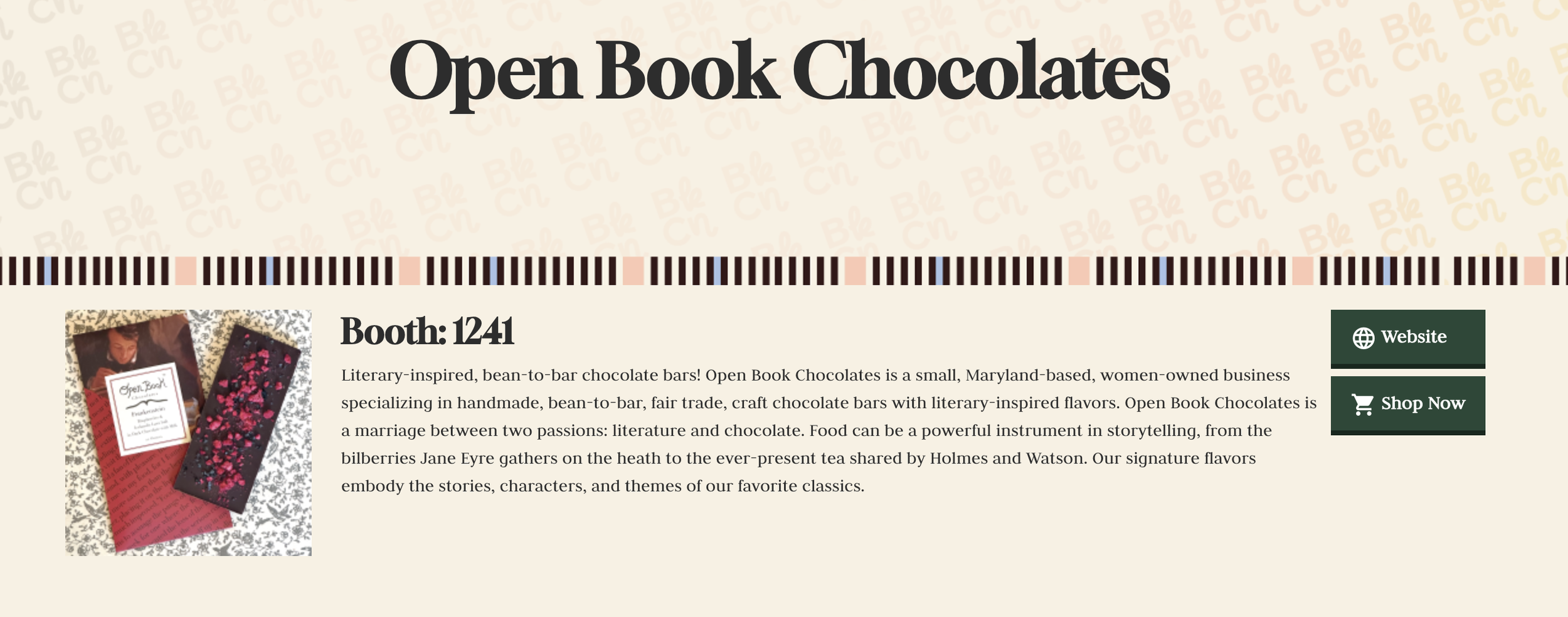 Today, BookCon launched their exhibitor list. In other words, you can now see all the wonderful exhibitors who will be attending BookCon at bookcon26.com/exhibitors. And, of course, Open Book Chocolates is on that list! Visit our BookCon profile by clicking the button below: